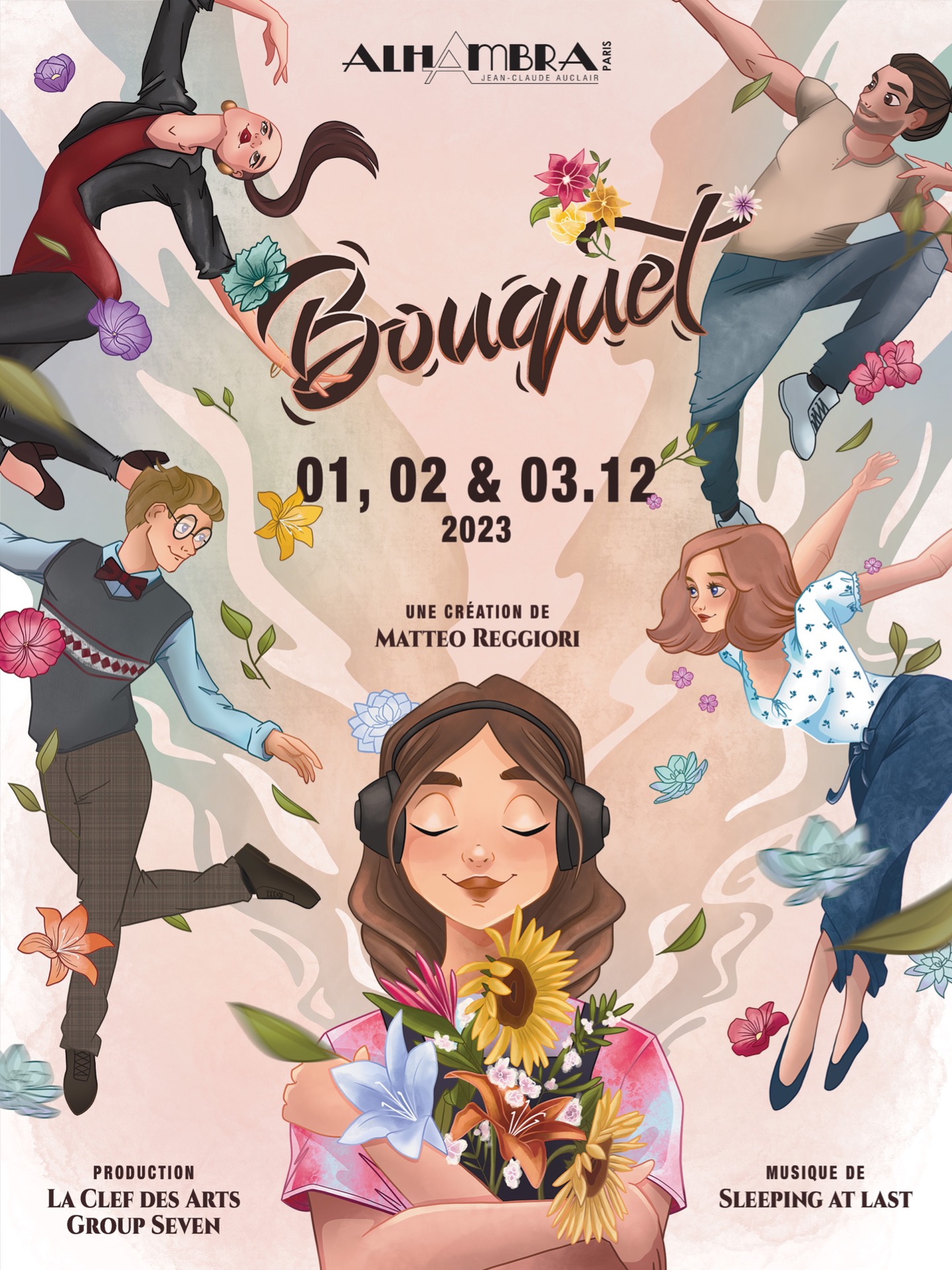 Bouquet est un spectacle troublant où danse, théâtre et émotions s'entremêlent pour vous transporter dans une réalité alternative. Les éternelles péripéties de l'amour s'y révèlent aussi variées et délicates que des pétales de fleur.